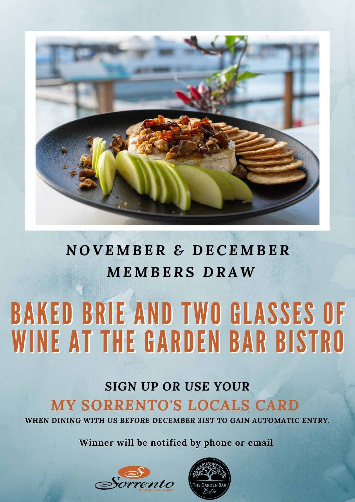 Sign up for your My Sorrento’s Locals Card and enjoy 10% off your total bill every visit.*