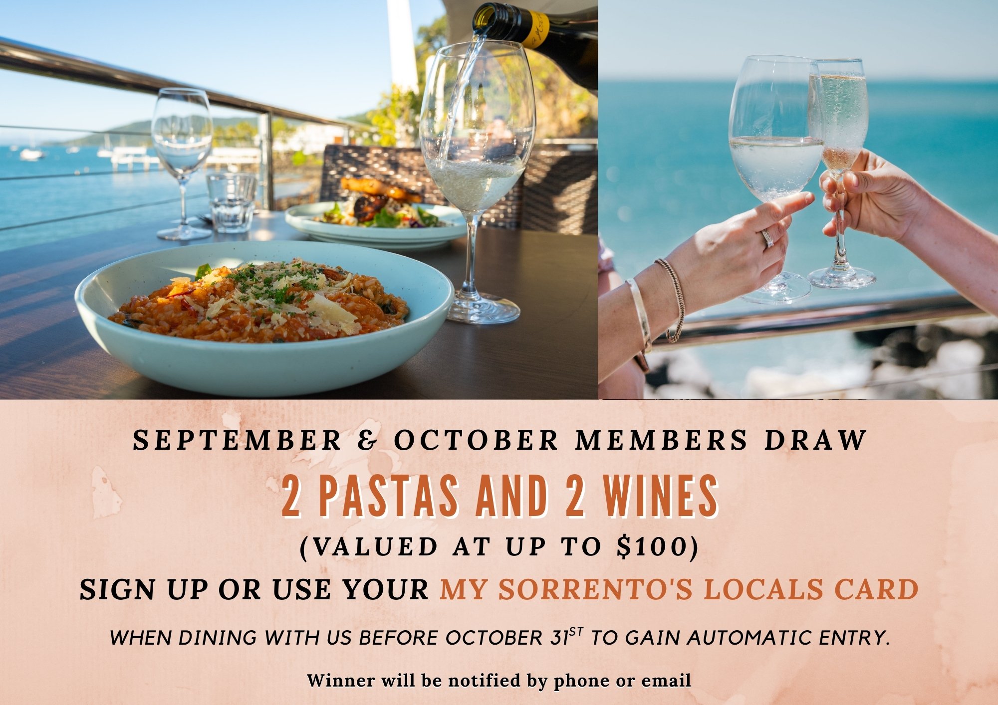 Love dining at Sorrento? If you’re a local living in the Mackay–Whitsunday region (postcodes 4737–4820), My Sorrento’s is our way of saying thanks.